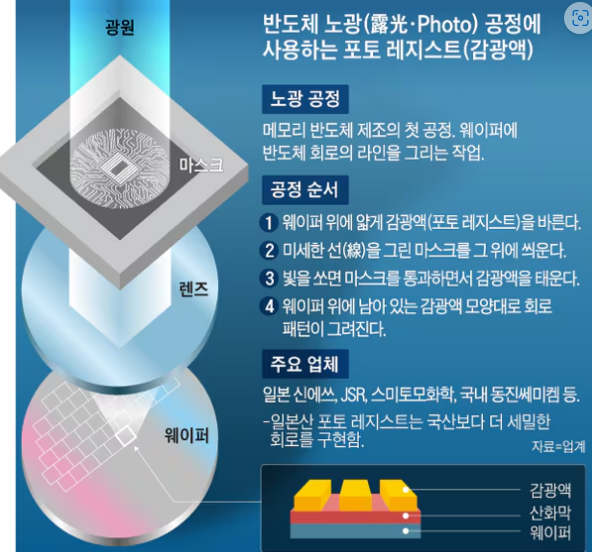 1. 포토레지스트 도포: 먼저, 웨이퍼 표면에 포토레지스트라는 감광성 물질을 도포합니다. 이는 빛에 반응하여 화학적 변화를 일으키는 물질입니다.