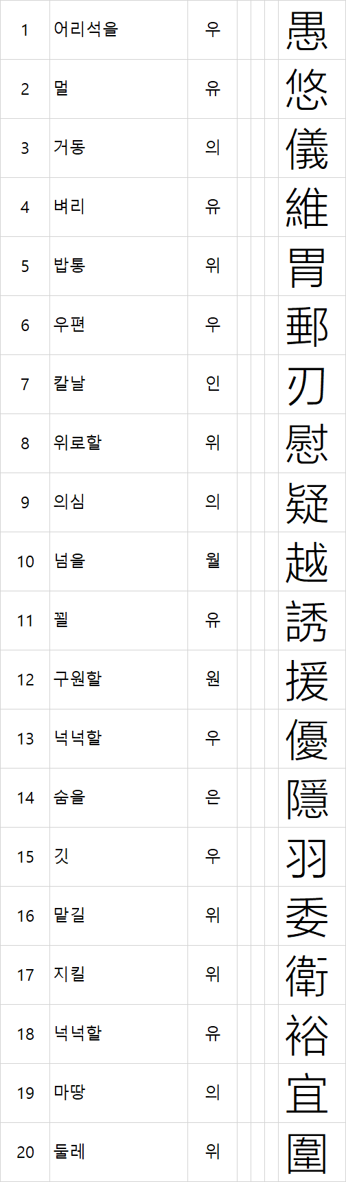 13 넉넉할 우