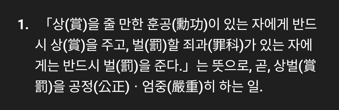 信(믿을 신) 賞(상줄 상) 必(반드시 필) 罰 (벌할 벌)