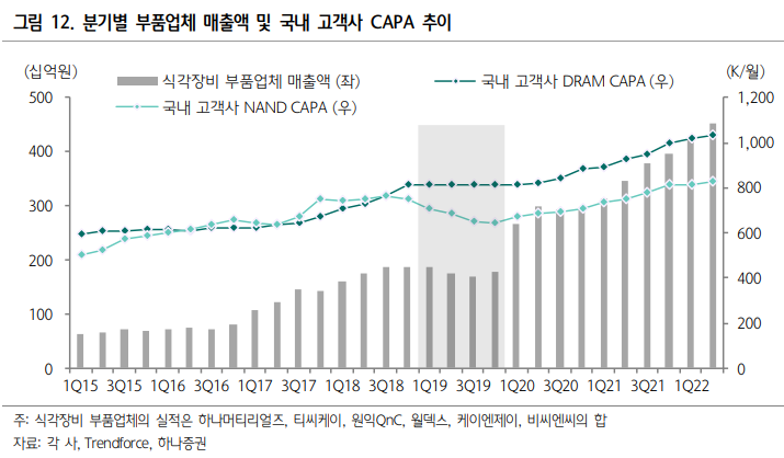 - 2019년 NAND 가동률 하락으로 교체수요 감소하며 식각부품 기업들의 매출 정체