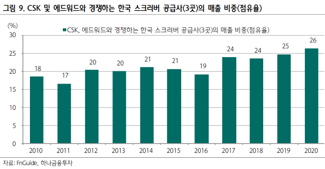 그밖에 한국 스크 러버 공급사 3개사의 성장을 알 수 있는 또다른 지표는 국내 시장에서의 점유율이다.