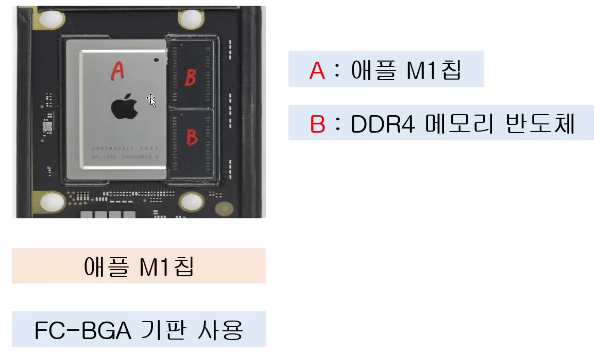 FC-BGA 방식은 칩의 크기가 기판보다 작음. 그래서 칩을 넣고 남는 공간에 메모리 등을 추가로 배치할 수 있음.