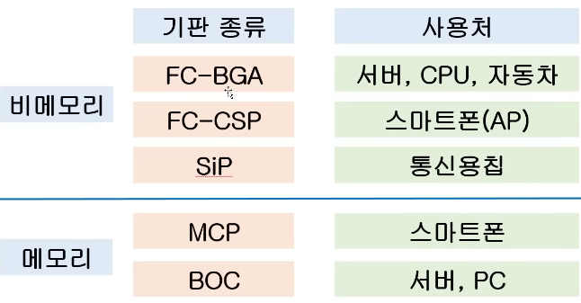 기판 중에서는 FC-BGA가 떠오르고 있음. 앞으로 많이 쓰일 것.