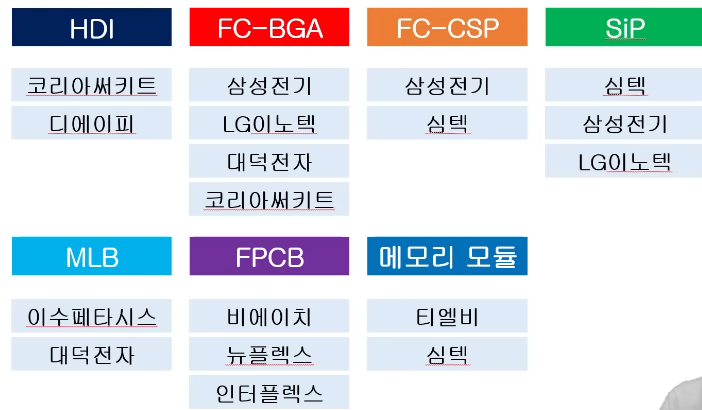 과거에는 삼성전기, 대덕전자, LG이노텍도 했었으나 사업을 접음. 한 때 업황이 많이 안좋았음.