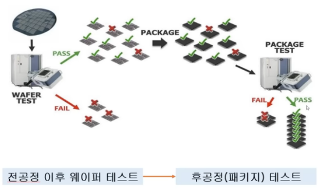 웨이퍼 테스트에서 찾아내지 못한 불량품들을 후공정(패키지) 테스트에서 골라냄
