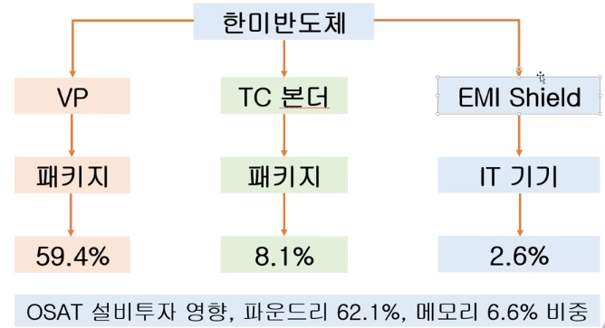 전방산업은 OSAT임. 이들 기업의 업황이 좋아지면 이들에게 장비를 공급하는 한미반도체의 매출이 증가함.
