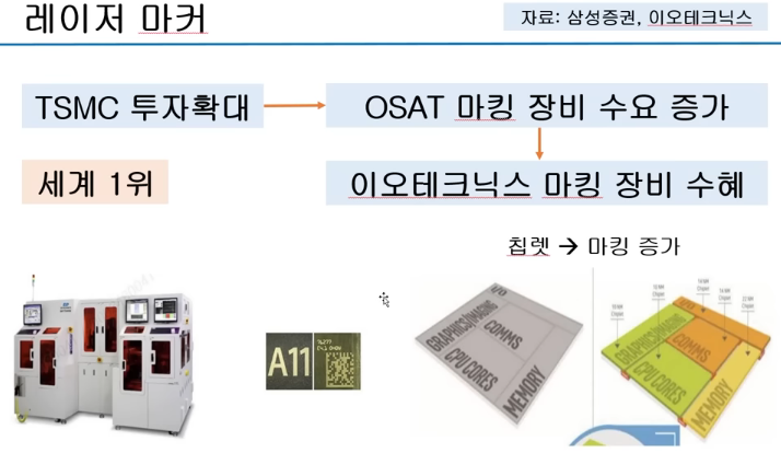 이오테크닉스가 구멍을 뚷고, 한미반도체 TC본더 장비로 연결을 하면 됨.
