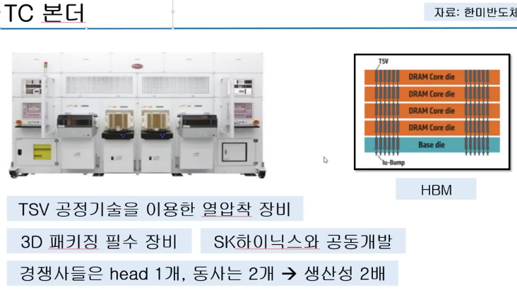 TC본더 : 칩과 기판을 서로 연결해주는 장비. 비중이 높지는 않음.