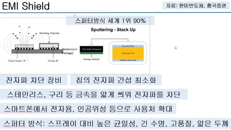 EMI Shield : 전자파 차폐. 비중은 높지 않음.