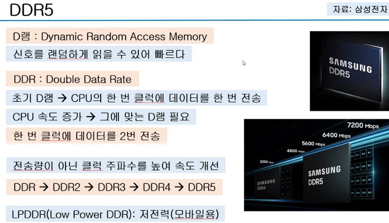 모바일에는 일반 DDR이 아닌 저전력의 DDR인 LPDDR이 들어감.