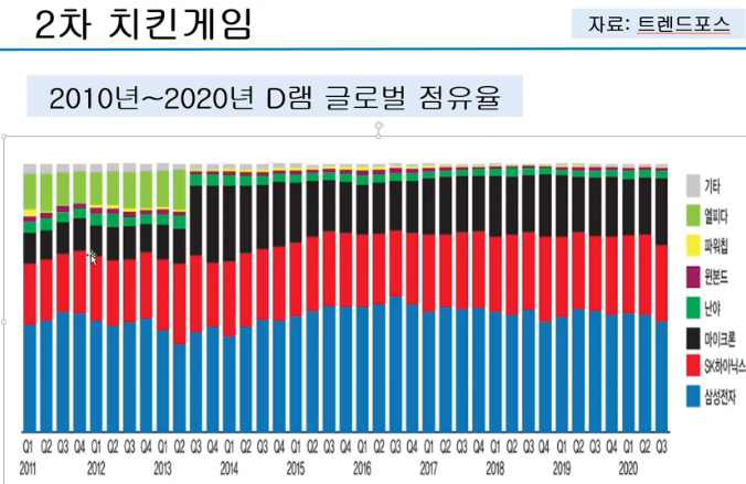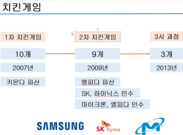 2013년 이후로는 삼성, 하이닉스, 마이크론 3개 회사만 남게 되었음.