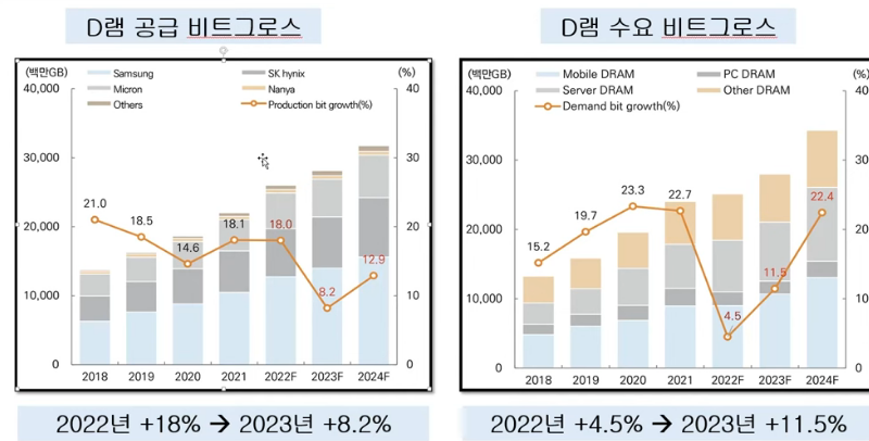22년은 수요 B/G보다 공급 B/G가 컸음. 그래서 가격이 하락한 것.