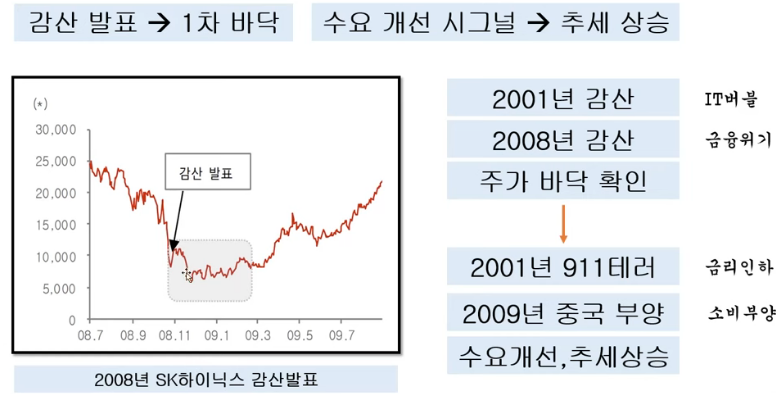 요즘은 수요 < 공급이라 가격이 하락해서 감산하고 있는 것.