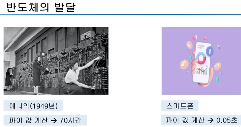 컴퓨터가 발명된 초기, 애니악은 파이 값을 계산하는데 70시간이 걸린 반면,
