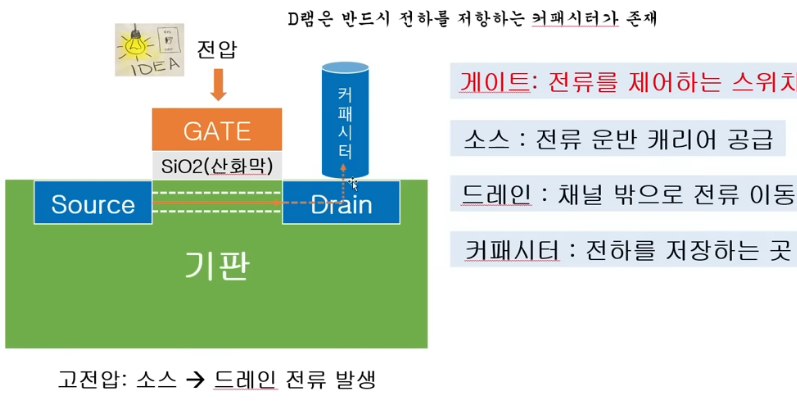 디램은 커패시터에 전하가 오래 남아있어야 함. 이것이 곧 성능.