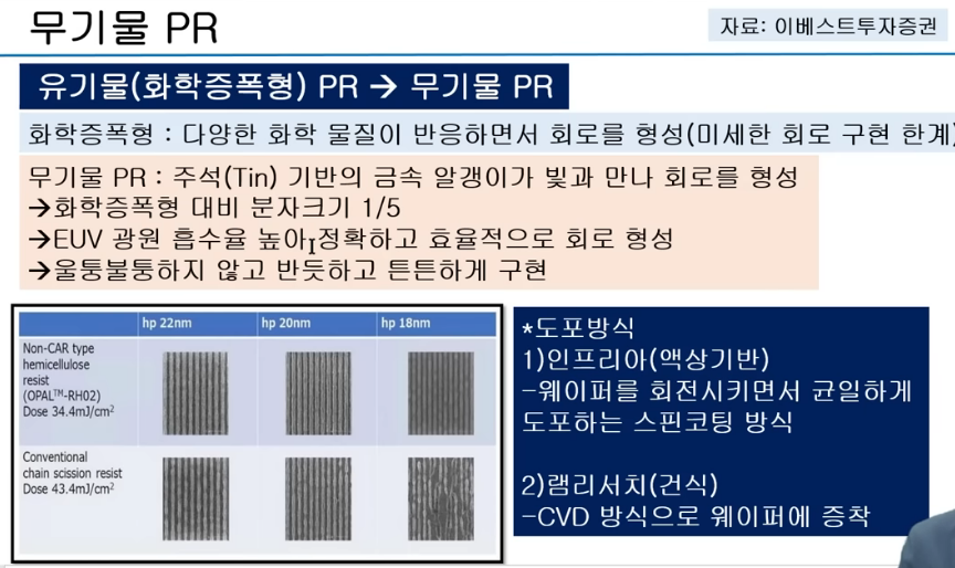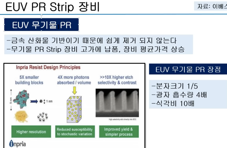 EUV용 PR은 무기물임. 금속..